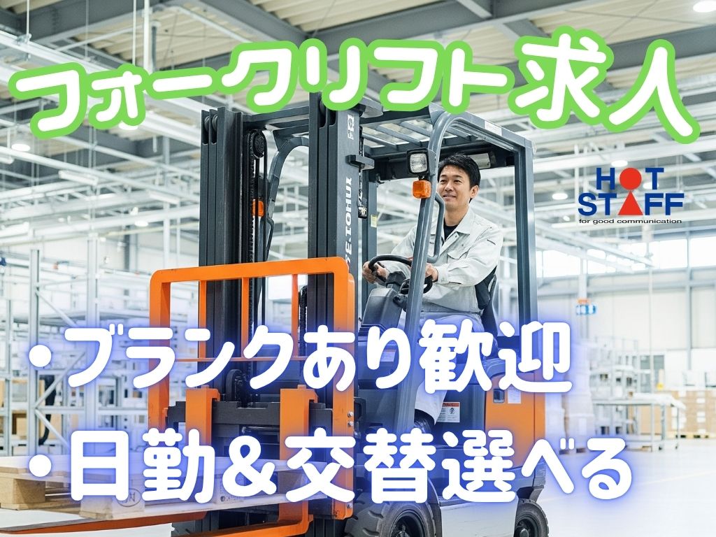 《ブランクあり歓迎・商品をフォークリフトで運搬》ほぼリフト作業/日勤&交替選べる/土日祝休み