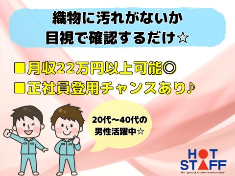 月収23万円以上可能*正社員登用チャンスあり◎織物に汚れがないか目視で確認するだけ