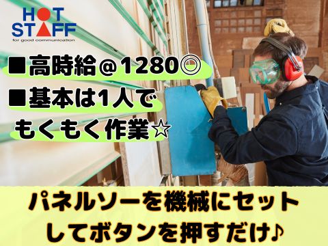 高時給@1280/基本は1人でもくもく作業/パネルソーを機械にセットしてボタンを押すだけ