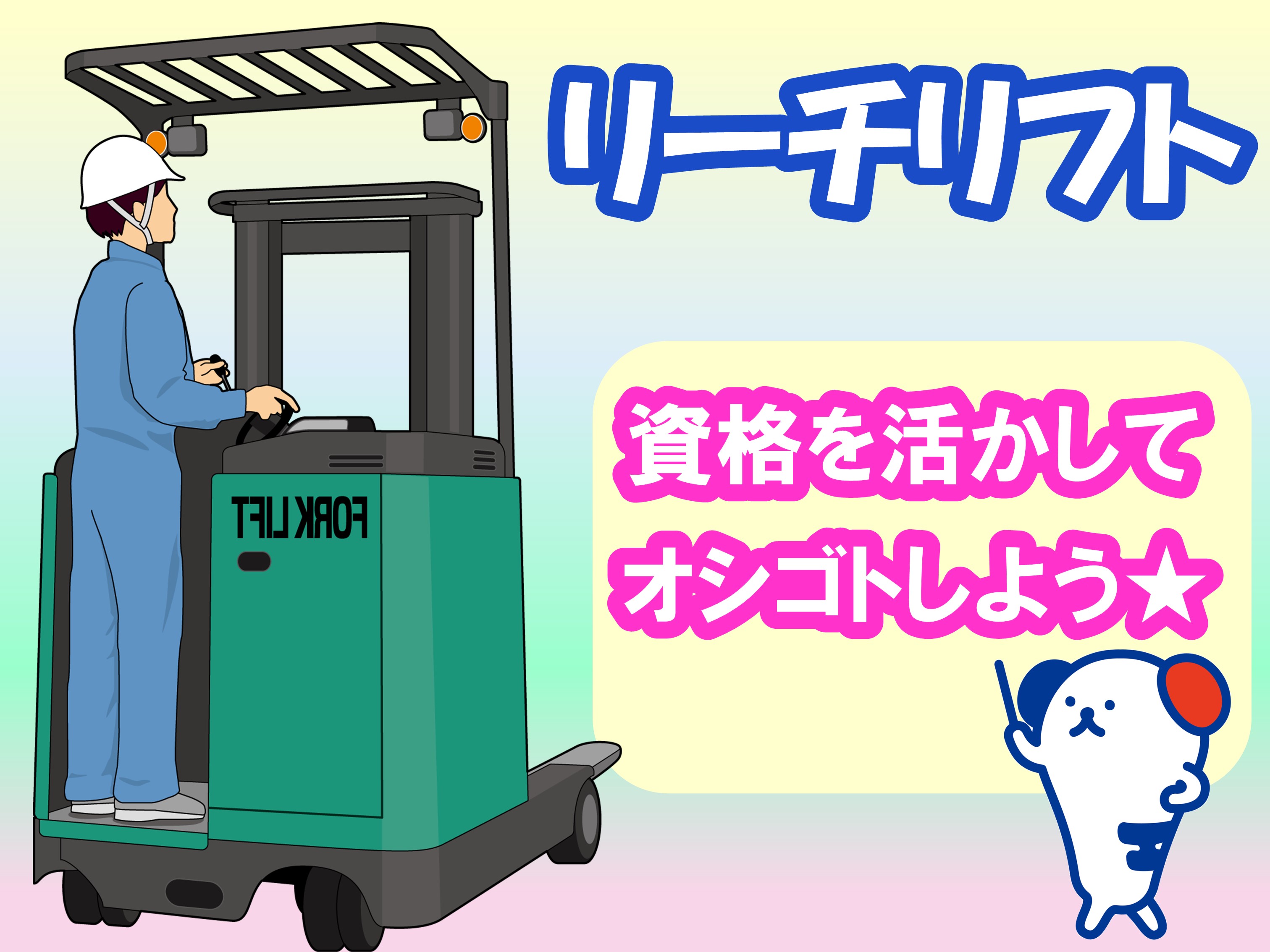 【月収25万円以上可能】資格を活かして高時給!リーチリフト作業員/人気の昼勤のみ&土日休み/服装自由