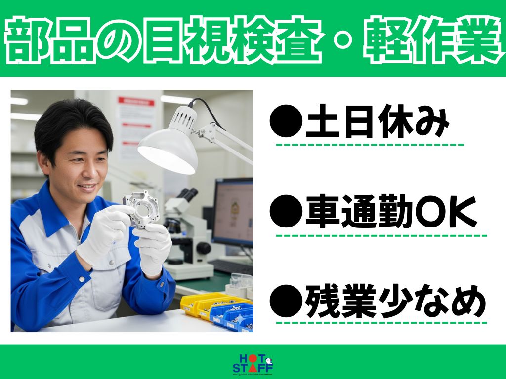 《手の平サイズ部品の目視検査・部品をフックに引っかける軽作業》土日休み/車通勤OK/未経験歓迎◎