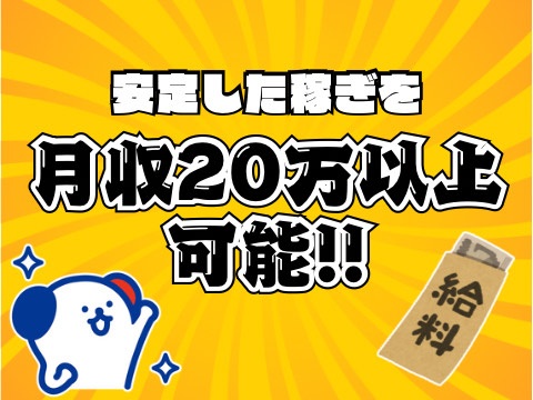 月収例 時給1300円×21日×実働8.0H×残業約5H=226,525円以上可