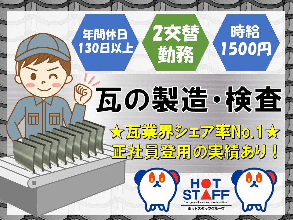 【瓦の製造・選別作業】時給1,500円~1,700円/正社員登用実績あり/残業多めで稼げる/休日も多くプライベート充実☆