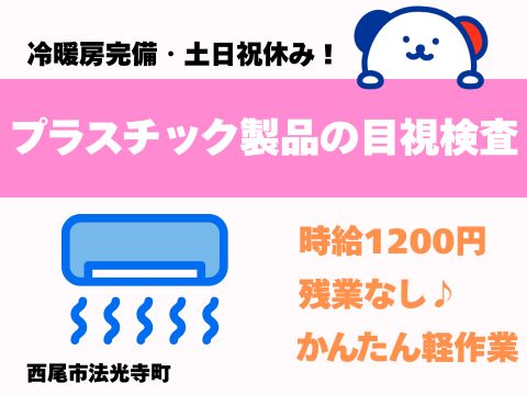 空調完備でキレイな工場☆<日勤・年間休日130日>平日のみ/プラ製品にキズがないかチェック◎