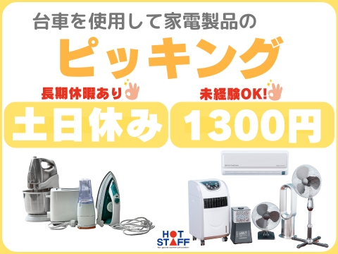 土日休みで長期連休あり!!/体を動かしたい方におすすめ☆/台車を使用して家電製品のピッキング