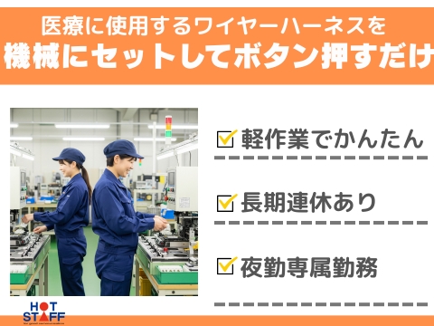 【機械に細いワイヤーをセットするだけ】簡単作業/夜勤専属/25時出社/土日祝休み