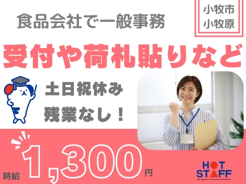 土日祝休み◎/残業なし/食品会社で受付や荷札貼りなどの一般事務