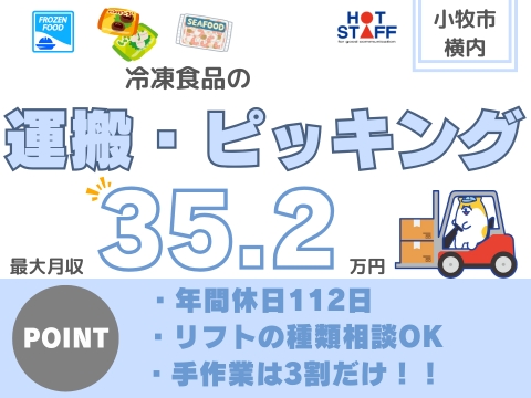 休みの希望が出せるシフト出勤制!/常温倉庫内/リーチリフトでレトルト食品のピッキング