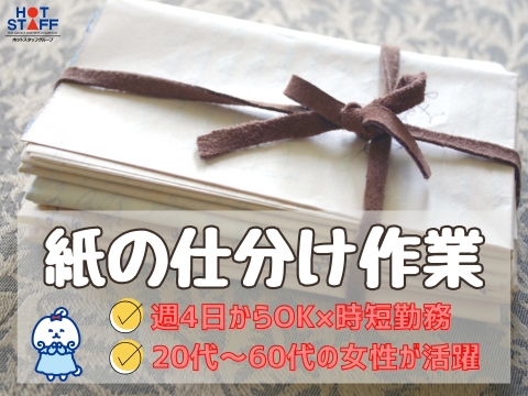 9時~15時の時短/土日祝日休み/かんたん軽作業/運ばれてきた紙を種類ごとに仕分けるだけ!