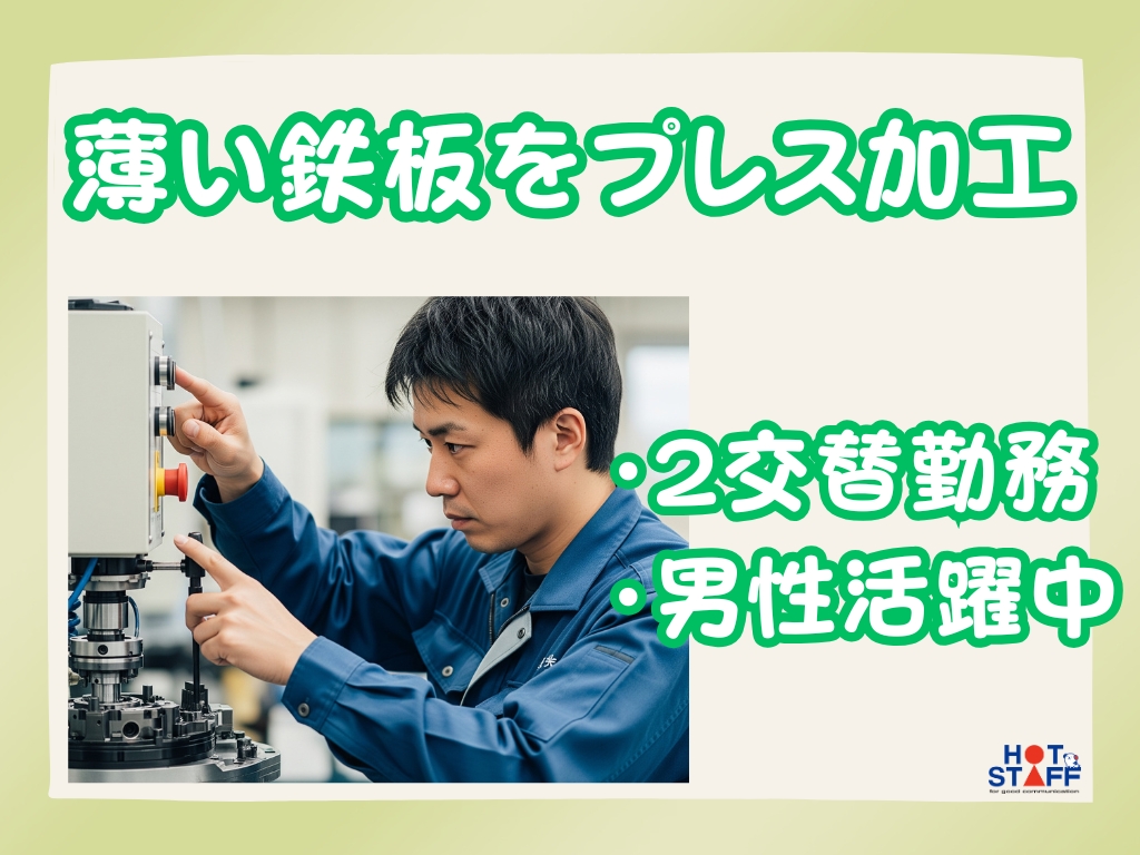 《うすい鉄板にプレス加工する作業♪》2交替/長期連休あり/皆勤手当て<3万あり>