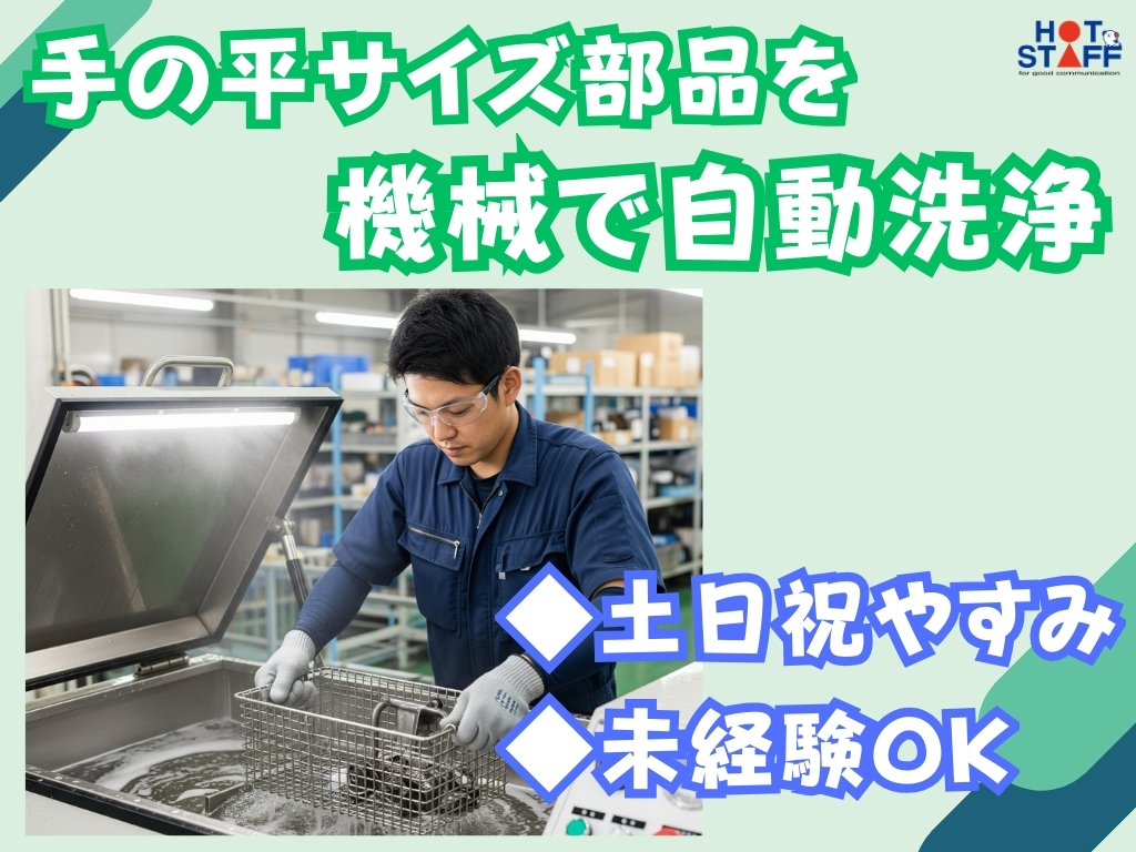 《手の平サイズの部品を機械で自動洗浄♪》空調完備/未経験OK/土日祝休み/ショートタイム