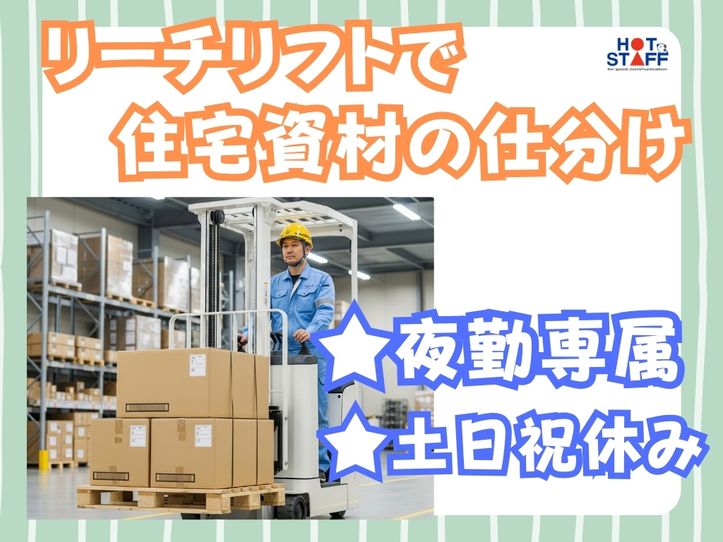 《リーチリフトで住宅資材の仕分け》経験を活かす/夜勤専属/土日祝やすみ/月収25万円以上