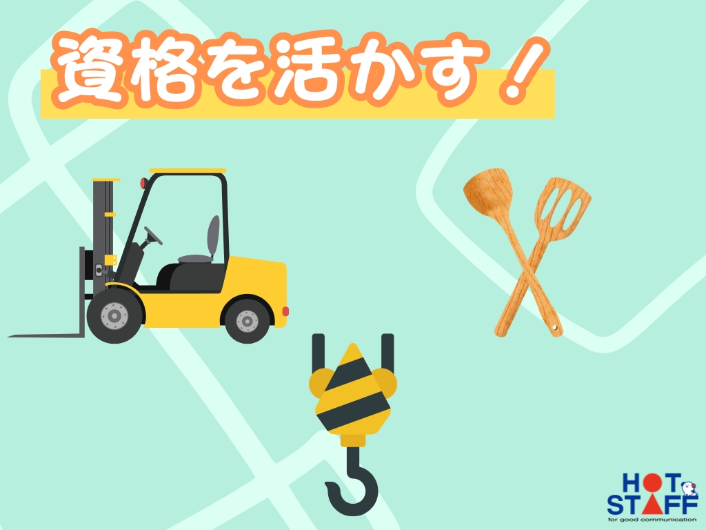 《ホットケーキミックスの製造と原料をリーチリフトで運搬♪》資格を活かす/月収25万円以上/土日祝休み
