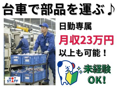 日勤のみ・完全土日休み「台車で必要な部品をお届け!」動きのあるオシゴト