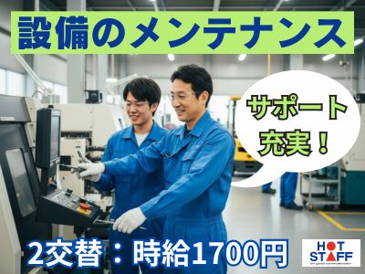 【工場が好きな方にオススメ】スキルが身に付く★設備のメンテナンス/高時給・2交替・土日祝日休み