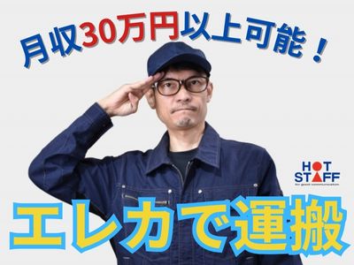 月収30万円以上可★エレカと台車で工場内を巡回!未経験OK・運搬スタッフ