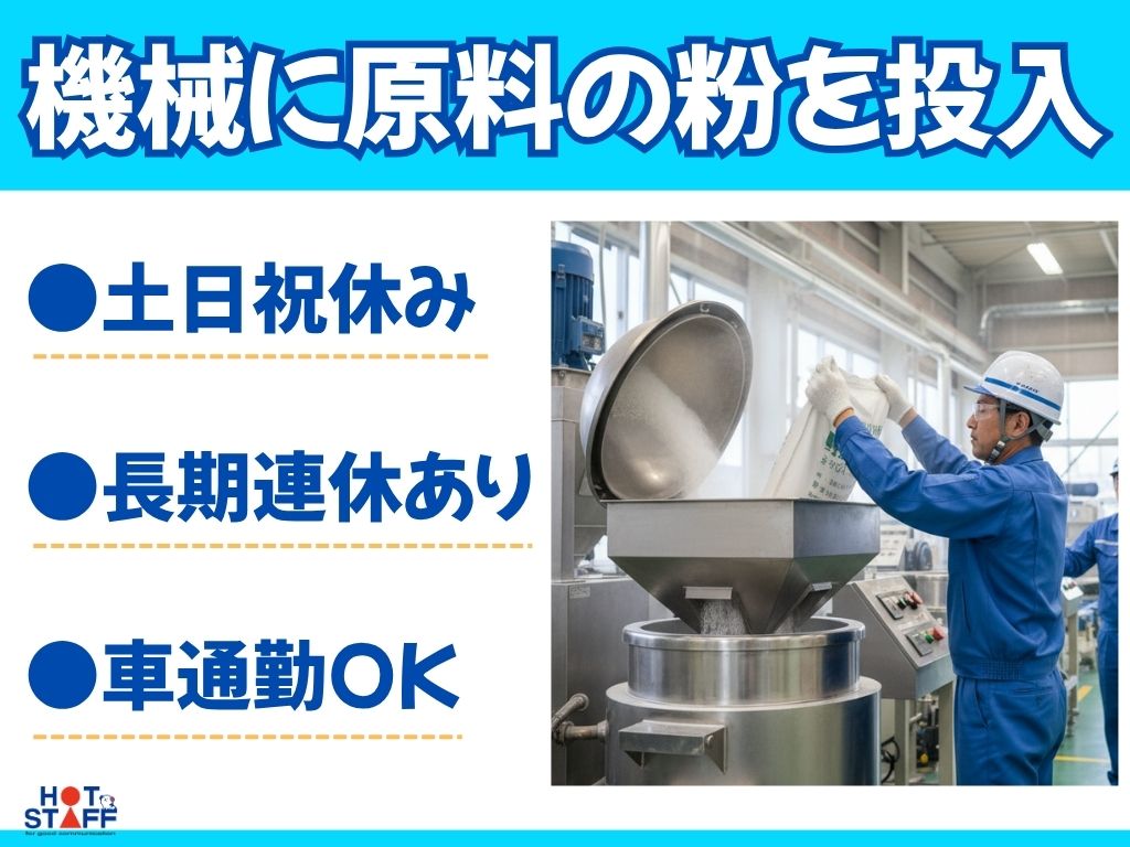 《原料の粉をリフトで運んで機械に入れる》土日祝休み/長期連休あり/リフト経験少なくてもOK◎