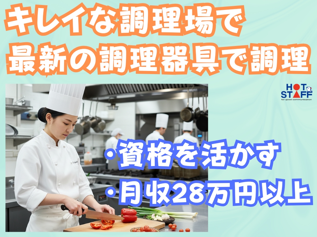 《綺麗なキッチンで最新の調理器具を使って調理♪》資格を活かす/残業なし/月収28万円以上