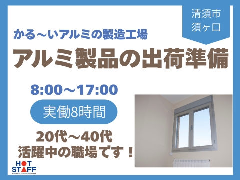 駅から徒歩4分・日勤・土日休み★/単純作業で重量物なし!アルミ製品の出荷準備♪/未経験者さんOK