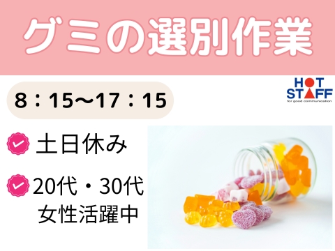 未経験からスタートOK★日勤のみ・土日休み・長期連休あり!/グミを検品して梱包するだけ♪