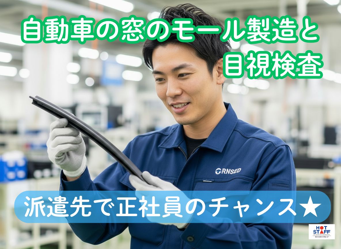 《派遣先で正社員のチャンス!》勤務時間相談可能★自動車の窓のモール製造|時給1800円|土日休み