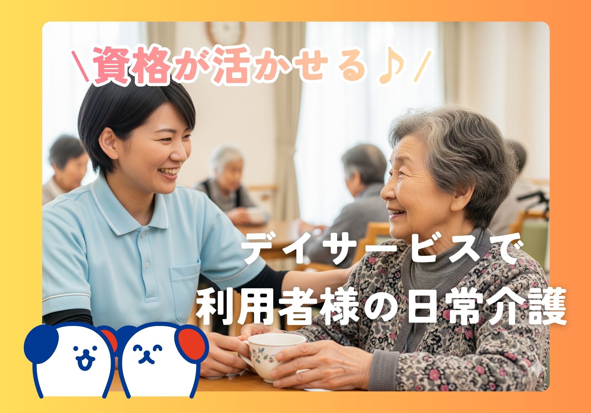正社員★資格が活かせる!デイサービスで日常介護|月収30万以上|日曜+平日1日休み