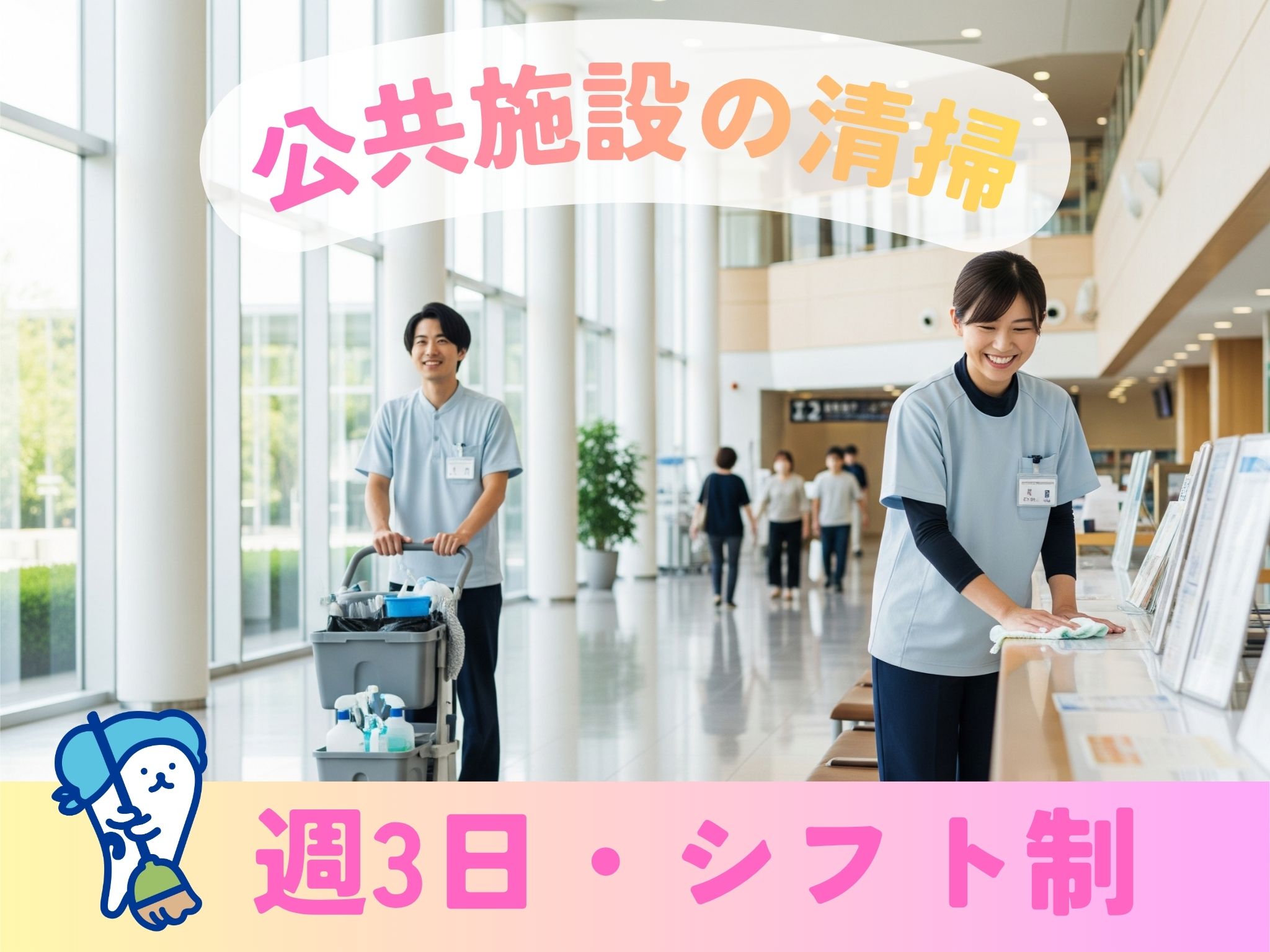 7:30~15:00|週休3日シフト制・希望休OKでプライベート充実♪モクモクと公共施設のお掃除