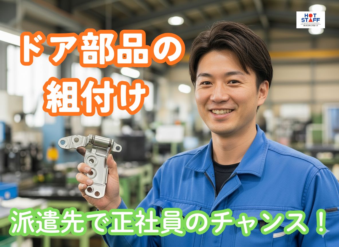 派遣先で正社員のチャンス★時間選べる!未経験歓迎!自動車ドアの部品製造|1800円|土日休み