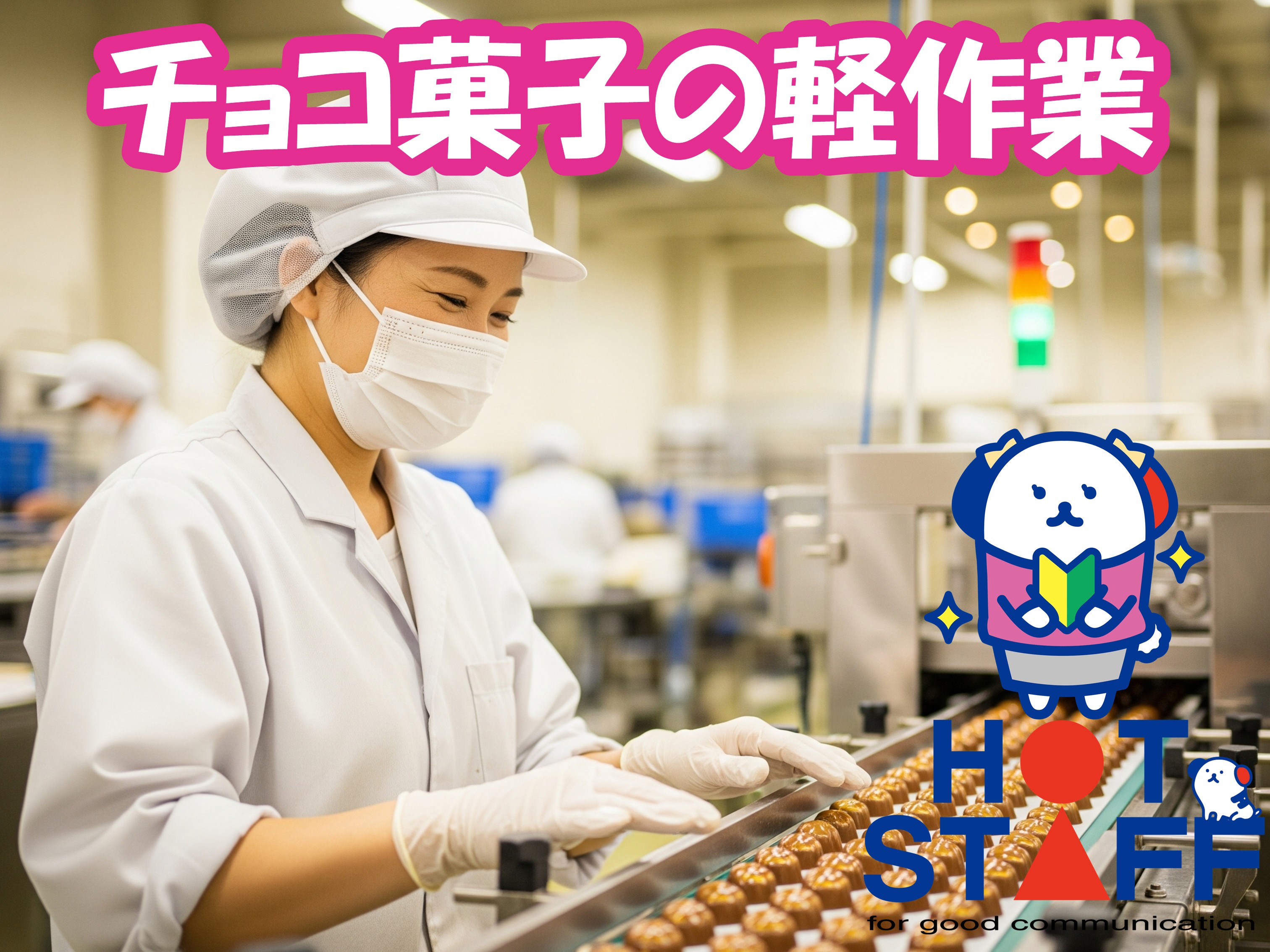 【日勤・夜勤選択OK】家庭と両立◎お菓子の甘い香りに包まれて働こっ♪人気のチョコのかんたん軽作業