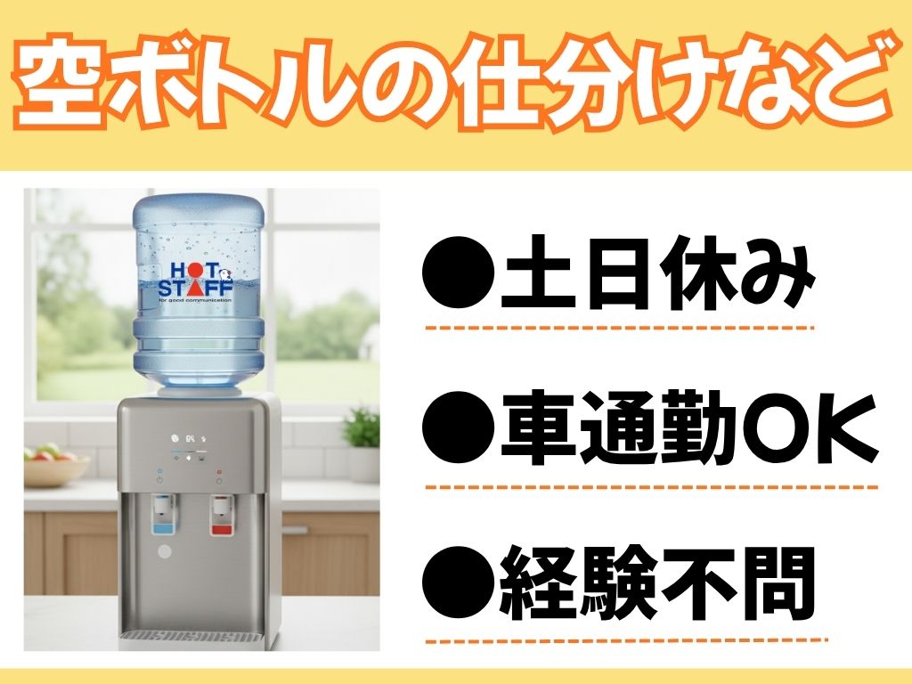 《ボトルの仕分けやウォーターサーバ―の洗浄》年間休日120日/残業なし/シンプル作業/未経験OK◎