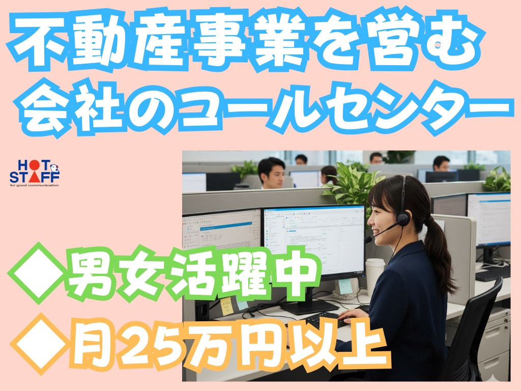 《不動産事業を営む会社のコールセンター♪》土日祝休み/月収25万円以上/残業なし