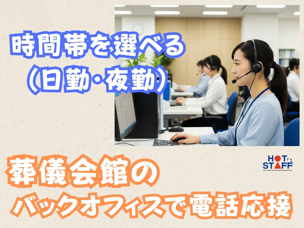 《葬儀会館のバックオフィスで電話応接♪》未経験OK/時間帯を選べる/月収31万円以上