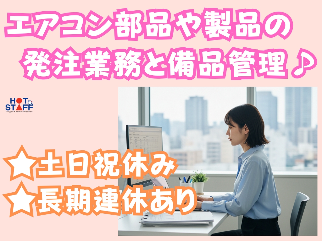 《エアコン部品や製品の発注業務とその他書類管理♪》土日祝休み/年間休日120日以上/ネイルOK
