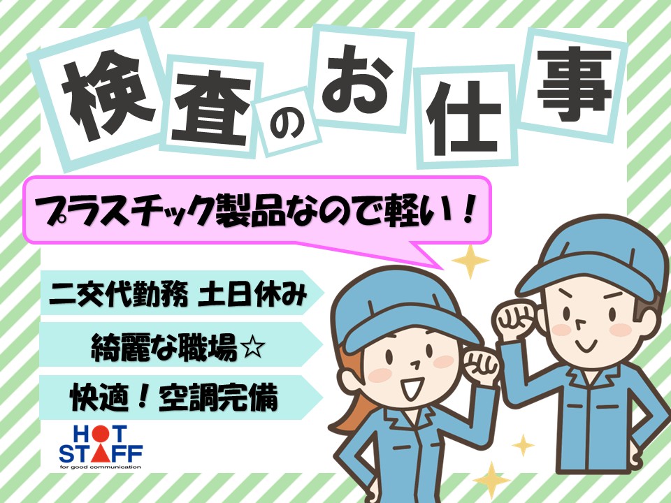 《増員の為急募》【手のひらサイズプラスチック製品の検査】二交替/モクモク/環境バツグン/重量物なし