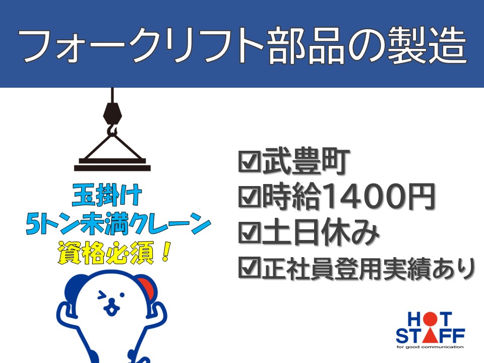 【フォークリフト部品の製造】長期安定/正社員登用のチャンスあり♪/土日休み/職場環境◎