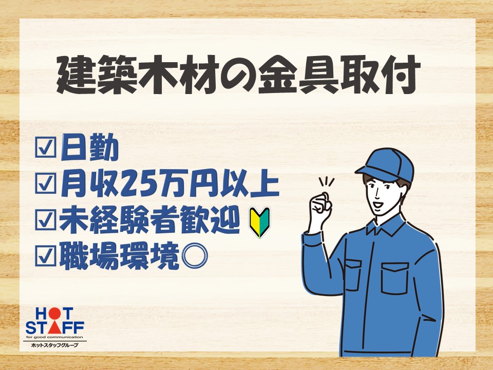 【金具取付け作業】アットホームな雰囲気/職場環境良好◎/未経験者大歓迎