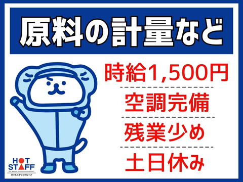 9:00~17:30/空調完備でキレイな職場◎/化粧品に必要な原料を計ったり集めたりのかんたん作業