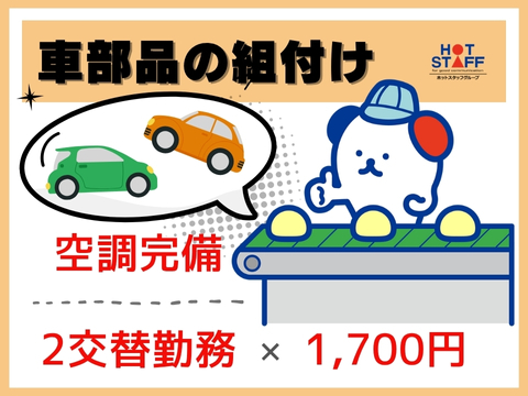 高時給1,700円×2交替勤務で稼げる◎/土日休み/流れてきた車部品を指示書に従って組付けるだけ!