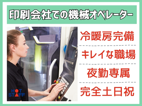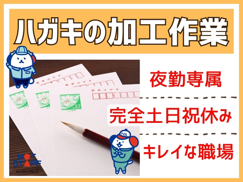 20時~5時/残業ありで稼げる/完全土日祝休み/ハガキを機械にセットしてスタート*圧着加工をします!