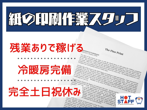 2交替勤務/完全土日祝休み/正社員登用のチャンスあり◎/紙を印刷加工、完成品はダンボールへ!