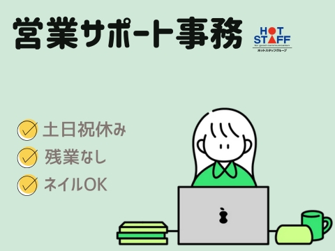 8:30~17:20/土日祝/残業なし/ネイルOK◎/図面を印刷したりPCへ入力したりの営業サポート