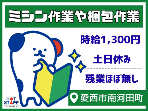 8:30~17:30/残業ほぼ無し/完全週休二日制◎/人工芝などをミシンで縫ったり、梱包したり!