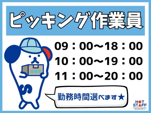11時~20時/勤務時間選べる◎/平日休み/指定の冷凍・冷蔵食品を集めて出荷先ごとに分けるだけ!