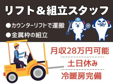 1月末までの短期/残業してもしなくてもOK◎/カウンターリフトでの運搬作業や金属枠の組立など