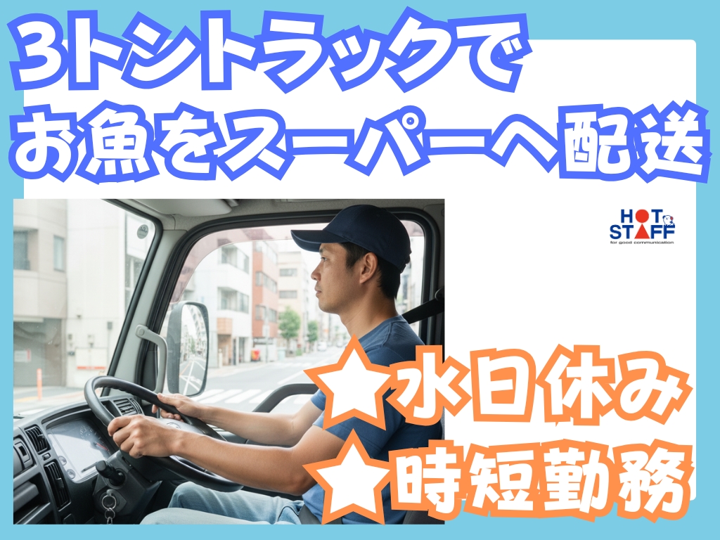 《3トントラックで新鮮なお魚をスーパーなどへ配送♪》経験を活かせる/水日休み/ショートタイム