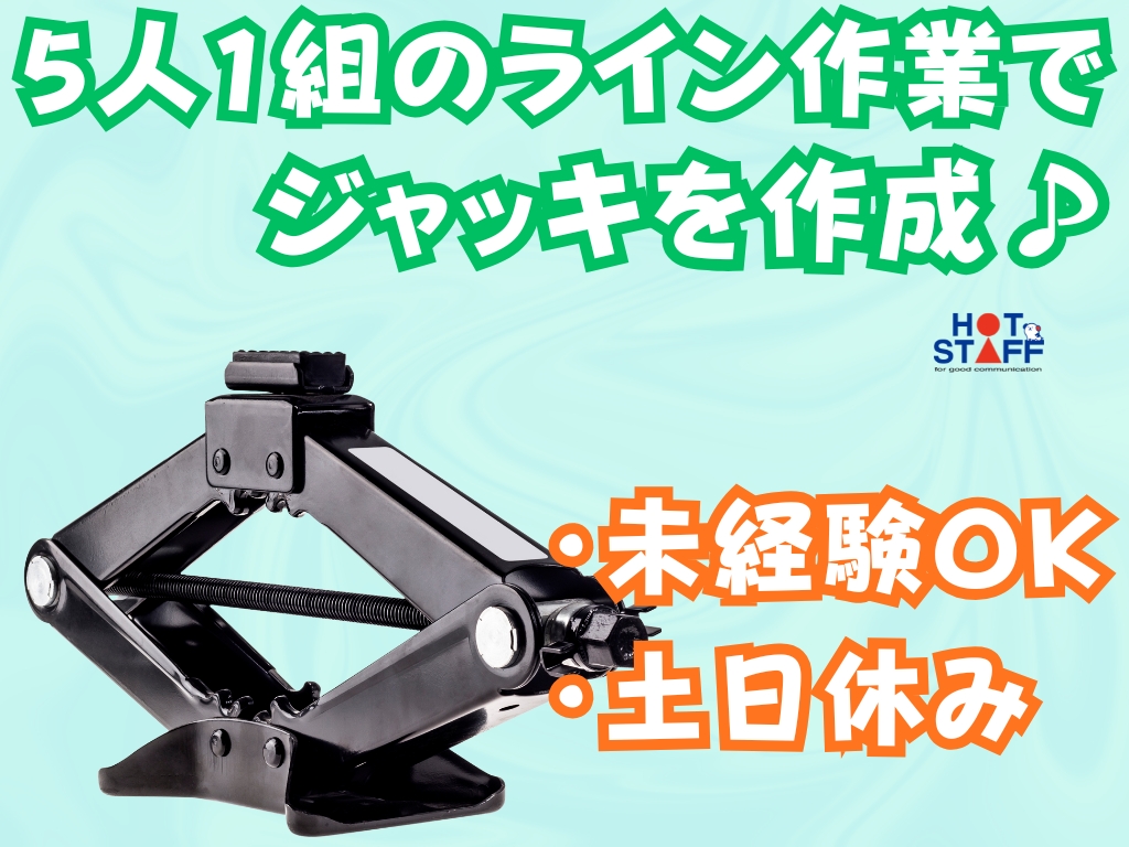 《5人1組のライン作業でジャッキのパーツを作成♪》未経験OK/土日休み/モクモク作業
