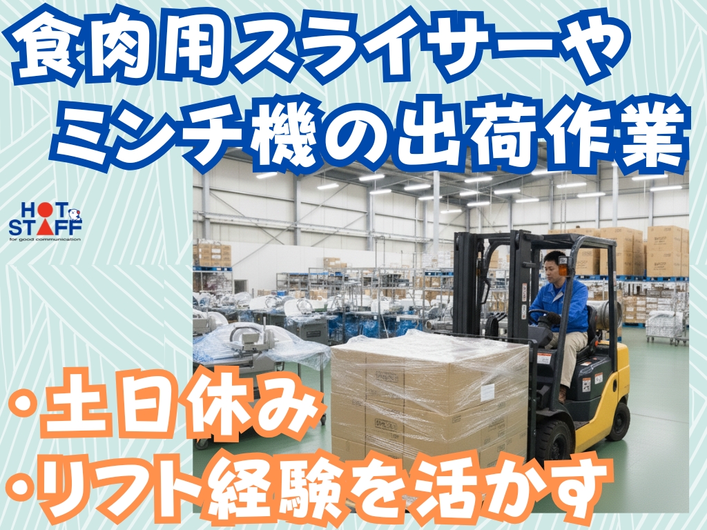 《食肉用スライサーやミンチ機の出荷準備や倉庫管理》リフト作業/土日休み/時間の調整もOK