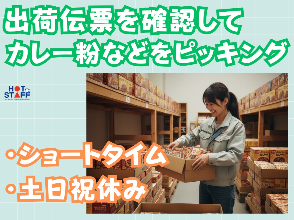 《出荷伝票を確認してカレー粉などをピッキング♪》未経験OK/ショートタイム/土日祝休み