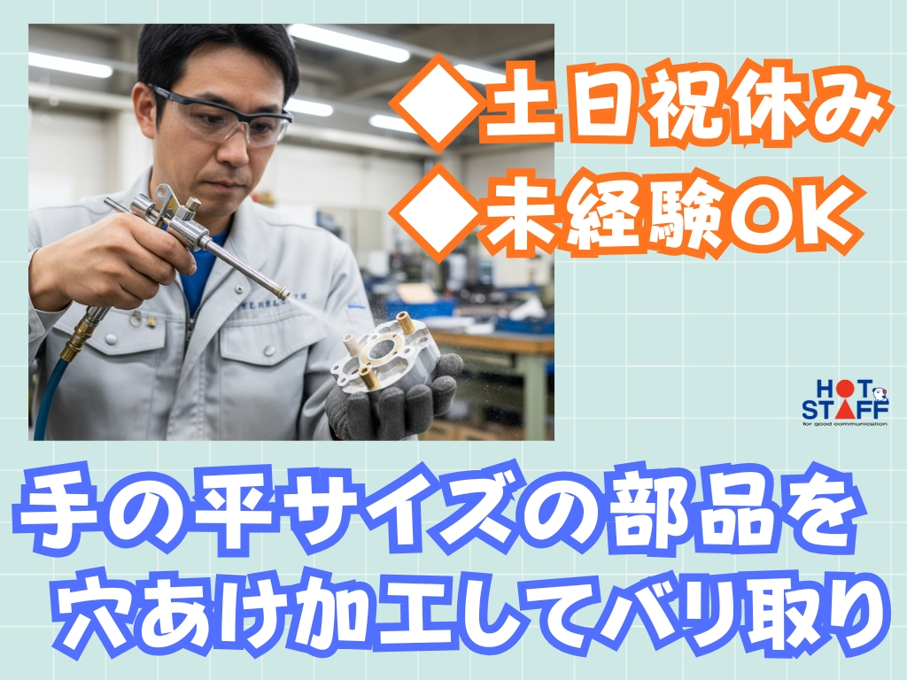 《手のひらサイズの金属部品を工具でバリ取り♪》未経験OK/土日祝休み/残業なし/モクモク作業