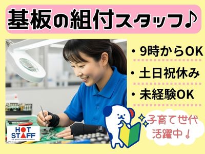 土日祝休み・9:00~17:05も可能【手のひらサイズの基板組付】空調完備キレイな職場♪